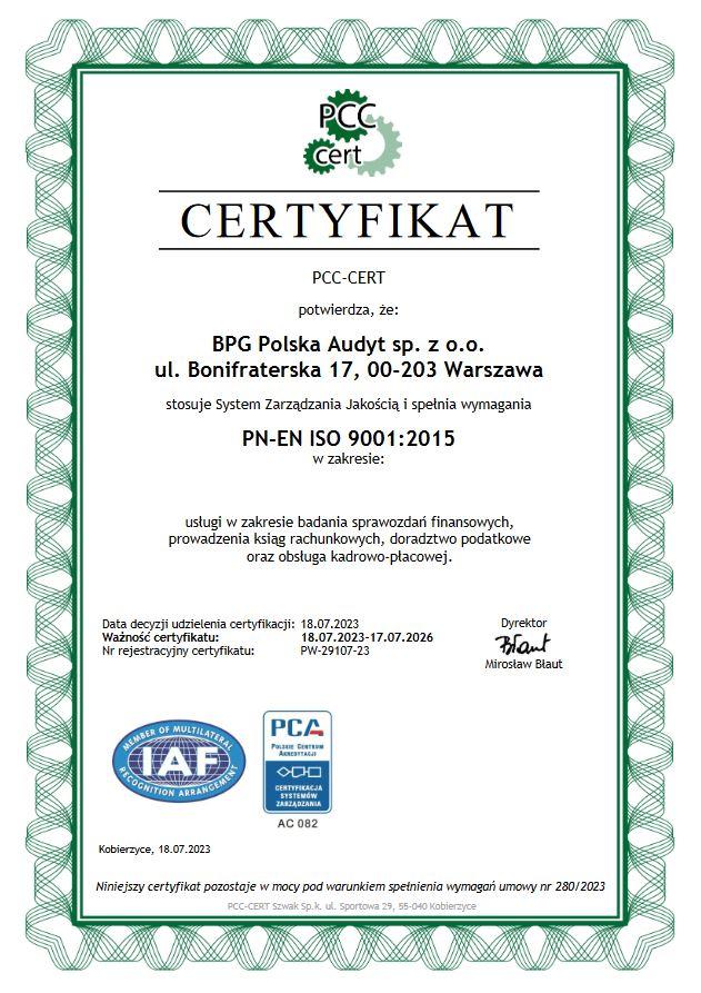 współpracy w Polsce i na świecie. BPG Polska Audyt świadczy następujące